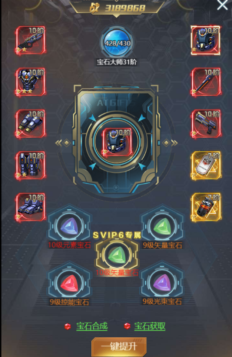 ③ 镶嵌的宝石等级越高,给主角的加成属性越多。