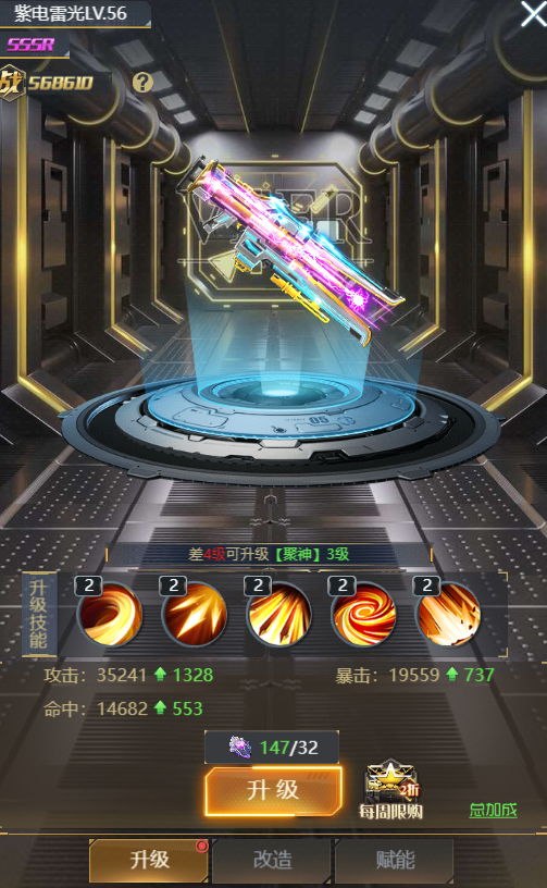 ② 枪械的养成分为【升级】【改造】【赋能】三种方式。