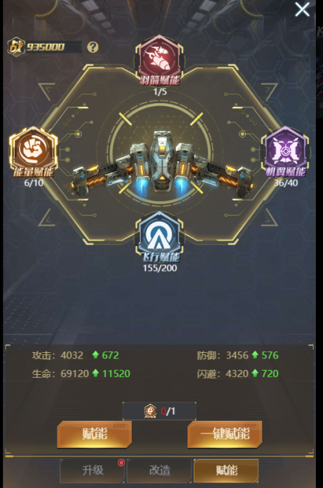② 飞行器的养成分为【升级】【进阶】【赋能】【改造】四种方式。