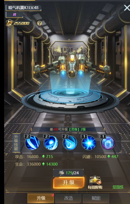 ② 机械翼的养成分为【升级】【改造】【赋能】三种方式。