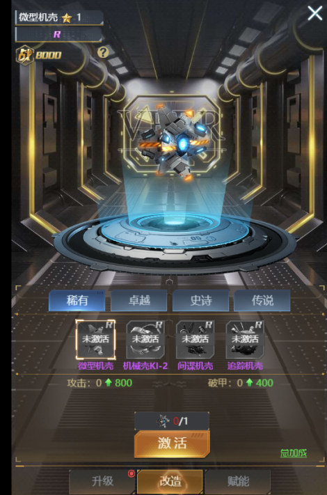 ② 机壳的养成分为【升级】【改造】【赋能】三种方式。