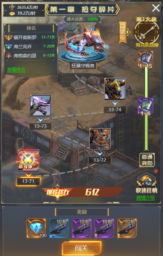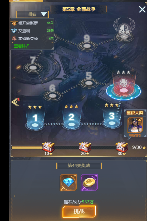 ① 玩家可通过主界面的【关卡】入口进入闯关BOSS系统,进行闯关挑战。
