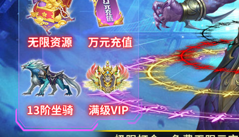 《曜石神魔录(万年魂环刷充)》是一款3D顶尖的MMO福利手游,在线送满V和万元真充卡还有GM额度免费充值,GM全靠钻石激活。任何怪物随机掉落GM充值额度,更有无限资源免费领。全3D美型涉及,大场面战盟团战,即时战斗超爽打击感。游戏中通过离线挂机,日常副本,限时活动获得多变战宠,炫彩神装,强力坐骑和华丽神翼提升自己的战斗力,享受跨服PK战斗乐趣,世界BOSS,人物养成,装备自由交易一应俱全,从歌舞升平的暗黑城,到烽火狼烟的血枫旷野,数十个精美华丽的庞大场景,构建出了手机上的3D大世界。