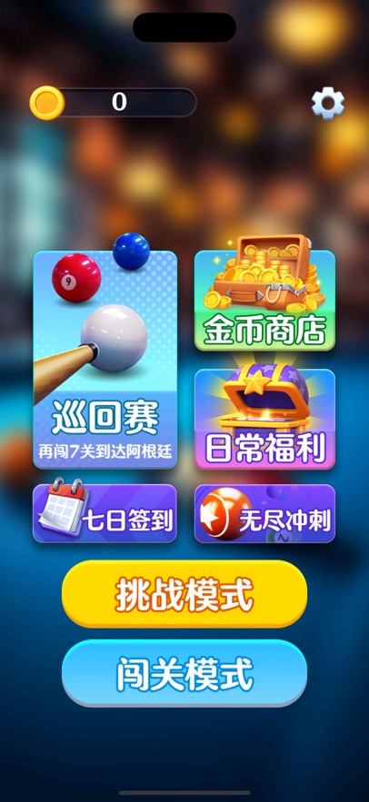 在这款游戏中,你将踏上全球巡回挑战的征程,在世界各地的特色场景中一展球技。游戏内的台面关卡丰富多样,无论是经典的八球玩法,还是充满创意的限时击球、指定球落袋等特殊挑战,每一关都精心设计,考验你的策略规划与击球技巧,让你时刻保持新鲜感。