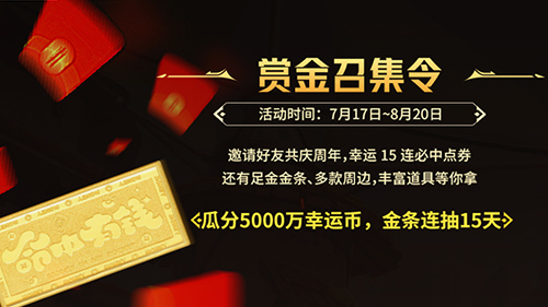 值此周年盛典,重磅福利活动也已开启。领取黄金之忆码直升99级,助力快速开启百级冒险!“赏金召集令”活动5000万幸运币和足金金条,天降鸿运等你赢取。