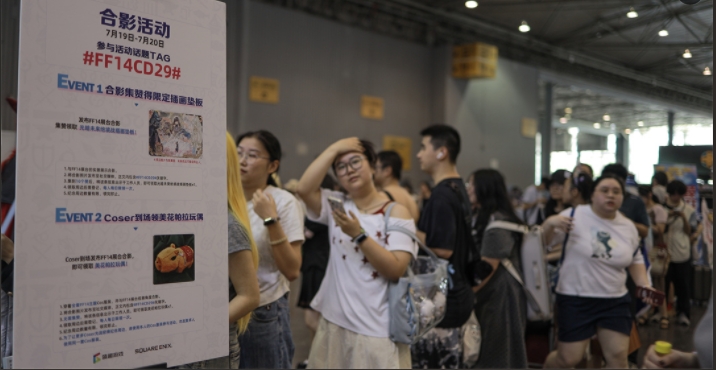 本次CD29漫展,FF14展台以超高人气的”光暗未来绝境战“插画为主题。首日,展台便人气爆满。光之战士的热情,即便七月炎炎夏日亦不可阻挡。