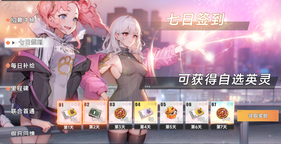 1、签到七日领取自选SSR英灵,多重奖励等你来领