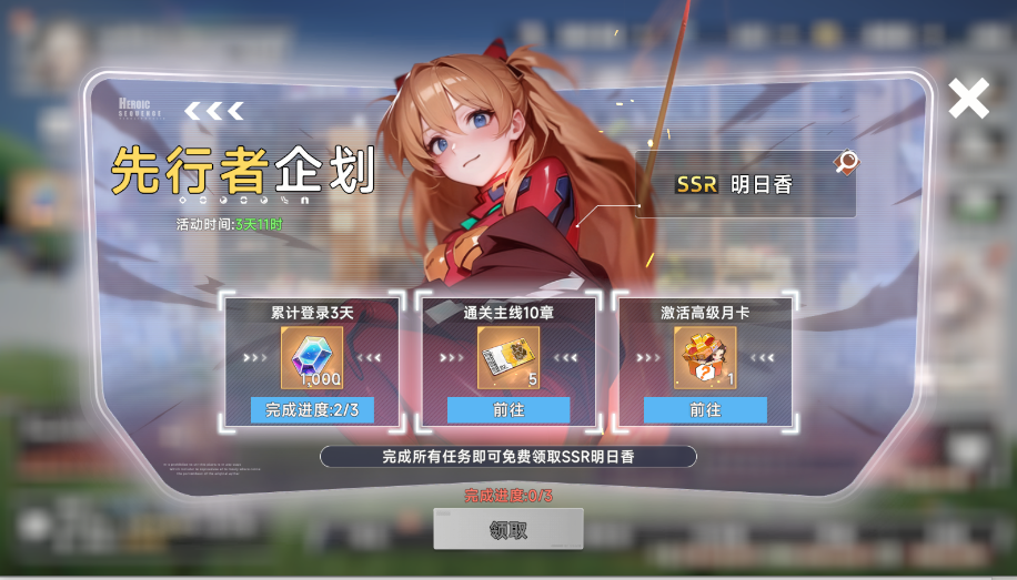 2、开服招募冲刺领取SSR三笠碎片钻石大奖
