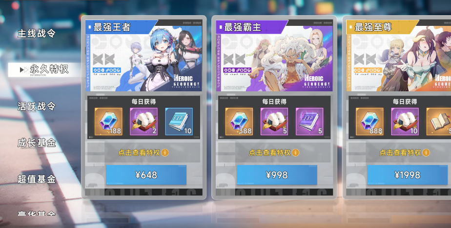 2、超值月卡终身卡微氪党必备,钻石领领领