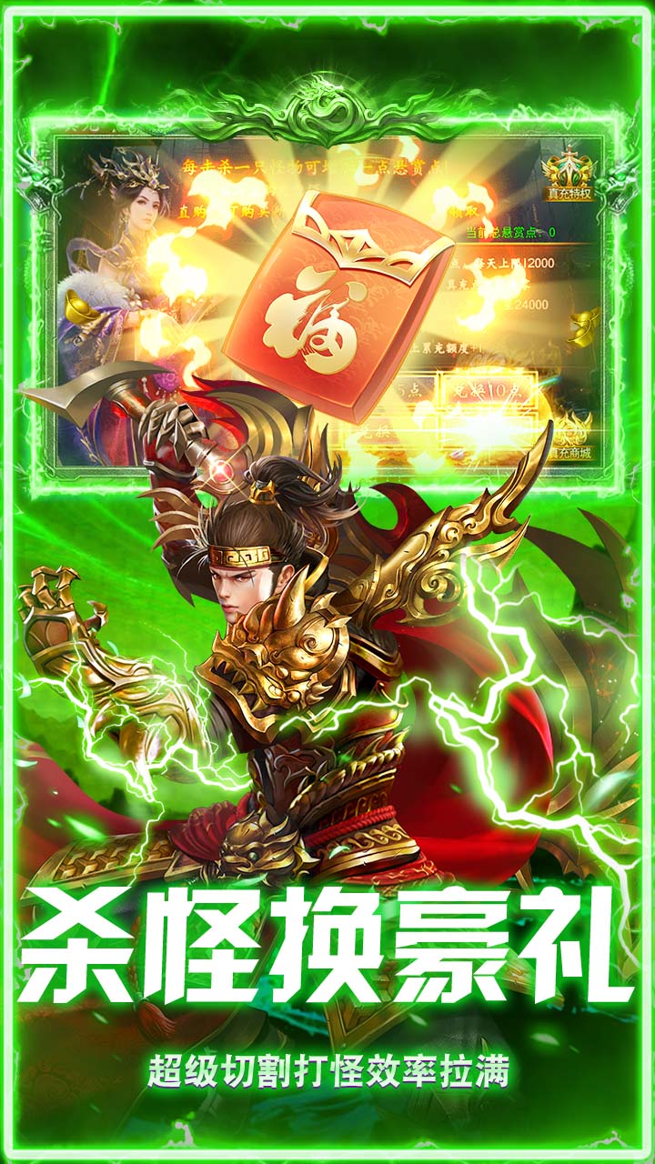 充值比例1元:10游戏货币 ★登录福利:上线领取新手豪礼、登录就送首充 ★百万真充:打怪兑换真充值点,免费兑换游戏道具 ★超高爆率:所有道具全靠打,小怪也能爆神装 ★赞助特权:打怪首爆领真充,无套路激活至尊赞助特权 ★活动玩法:超多活动玩法,参与即可获取大量材料、装备 ★后缀说明:游戏内置悬赏打怪福利,打怪兑换真充点可购买游戏道具