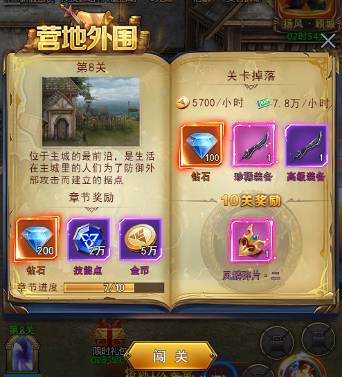 闯关是最重要的经验来源,通关后不仅可以获得大量的钻石、技能点、金币奖励,达到指定关卡还可以获得神器碎片,集齐碎片并激活神器可以获得额外的被动特效。