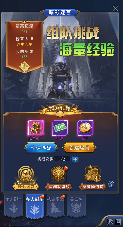 该副本组队经验副本,队伍在3分钟内击败的怪物越多,获得的奖励越多,是每天必做的副本。