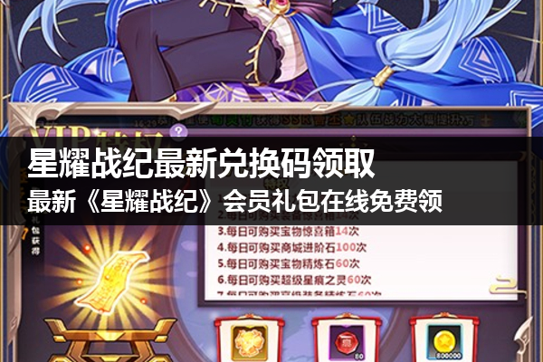 星耀战纪兑换码在哪里?《星耀战纪(黑科技无限充)》是一款以架空三国世界为背景的超必杀策略激斗卡牌手游。游戏借用了三国中大家熟悉的人物和人物关系,构建了一个架空的演义世界。创角即送GM工具,破解后领取极品英雄,再赠永久时装、千元充值卡、百万钻石。每天上线自动重置GM充值额度,直接点充,0氪畅玩。签到送百次抽卡,每日登录每日领取,万抽福利助君轻松组建极品武将阵容。你还在等什么呢?快来率领星灵们过关斩将、收复城池、击败魔王,拯救演义世界吧!,我猜很多玩家都还不知道星耀战纪这款游戏是可有些非公开的兑换码可供领取的,这些兑换码在游戏中是可以直接使用的,领取各种珍贵资源,98游戏这次就为小伙伴们整理了最新《星耀战纪》会员礼包大全!快跟着小编一起看看吧。