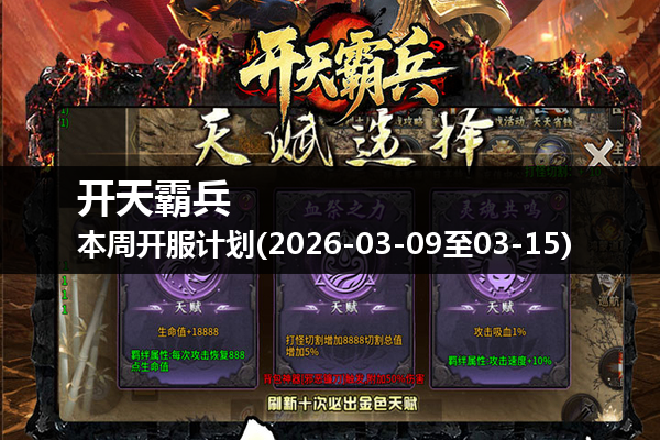 开服时间:2026年03月09日 08:00:00