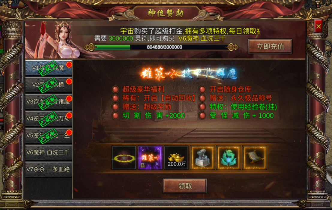【4】超级特权尽可能买全,早买争夺时间,能涨几万攻击!配合吸血挂机无压力!