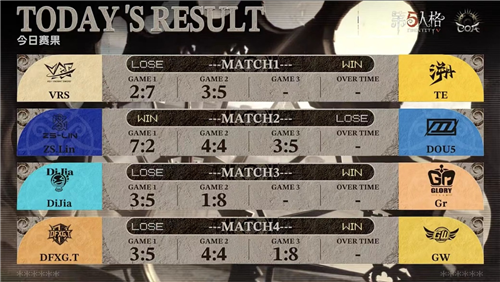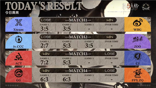本周比赛中,职业战队北京WBG、ACT、TE和Gr发挥出色,两战全胜挺进胜者组决赛,民间队ZS.Lin双阵营齐发力,爆冷战胜DOU5战队。