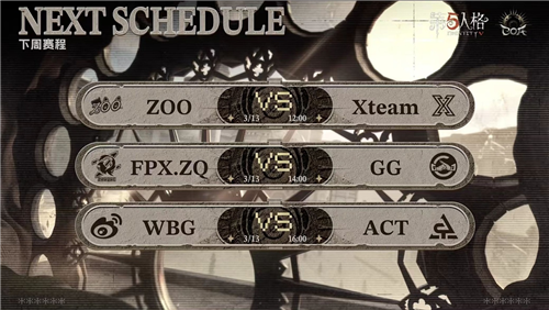 下周,胜者组将直接角逐出两个晋级名额,北京WBG、ACT、TE和Gr四支战队谁能捷足先登呢?FPX.ZQ再遇成都GG,ZS.Lin再遇DOU5战队,老对手重逢,又会擦出怎样的火花呢?敬请在下周五中午12点锁定《第五人格》赛事官方直播间,关注更多精彩比赛。