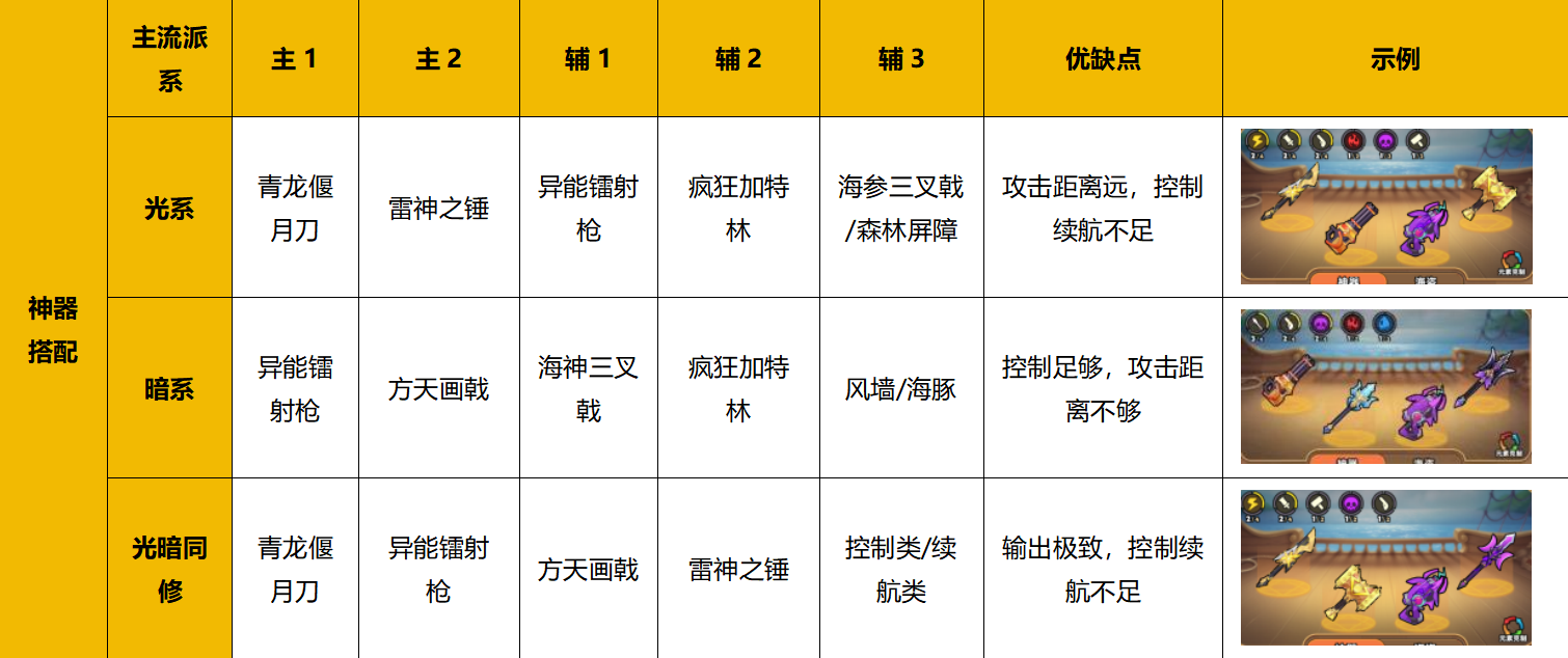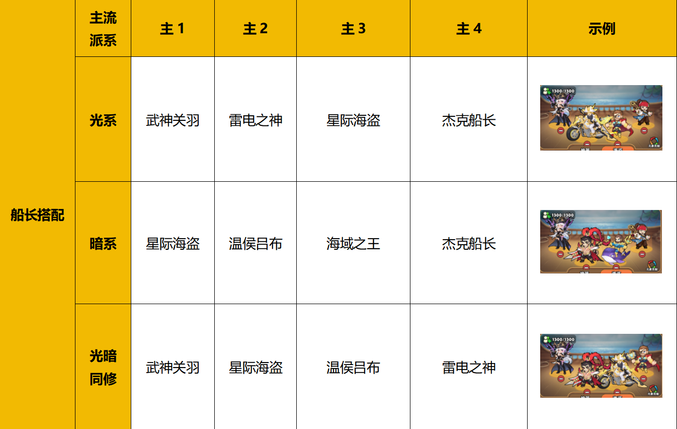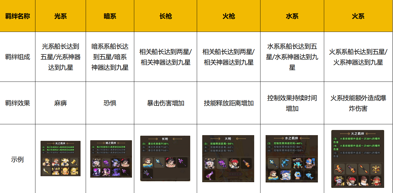 4、神器+船长(组合羁绊)搭配方案如下