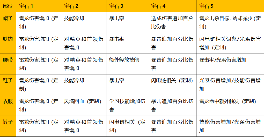 1.光系宝石搭配(优先拥有六个雷龙伤害增加宝石,雷龙定制宝石。随后根据资源数量选择相应品质宝石洗练,百分比伤害宝石为重点。)
