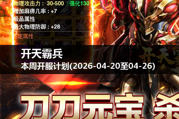 | 开天霸兵(刀刀元宝狂送充) | 送充58区 | 安卓端 | 2026-04-20 16:00 |
