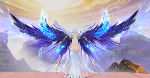 少女缓缓扇动双翼,冰晶碎片和绚丽流光,自羽翼间溢出四散,仿佛将万里星河铺展于眼前,让人无法移开视线。