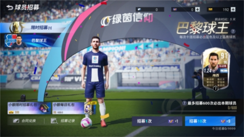 6月3日-6月9日,《绿茵信仰》开启【巴黎球王】限定卡池,至多600次招募必得梅西,并且完成指定培养任务即可获得【梅西·卡塔尔英雄】赛季时刻和大量丰厚奖励。